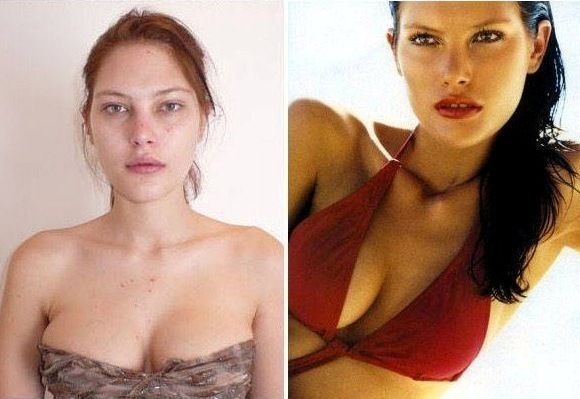 La série de photo suivante n'est pas très artistique mais elle est très intéressante, puisqu'elle met en scène des mannequins célèbres avec et sans maquillage.